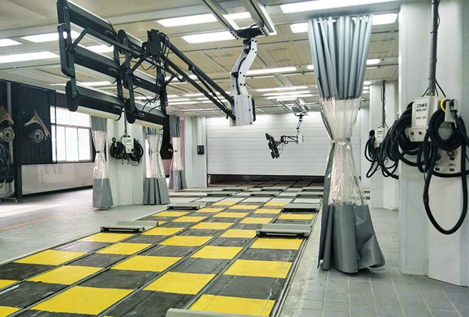 2、流水线工艺形式:大钣金→小钣金→局部刮腻子→腻子干燥→清洁→喷底漆→底漆烘干(局部) →中涂 →烘干→清洁→喷面漆→流平→面漆干燥。